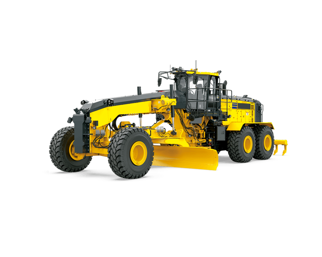 The GD955-7 is a powerful mining grader designed for rugged conditions, weighing nearly 47 tonnes and delivering 426 horsepower. It offers market-leading blade downforce and high engine power for faster operating speeds and enhanced productivity.